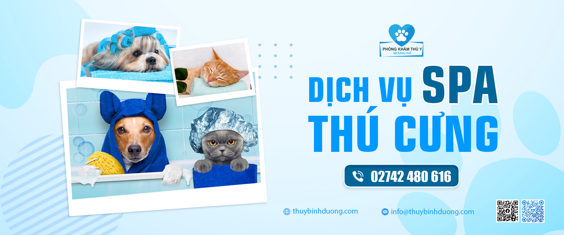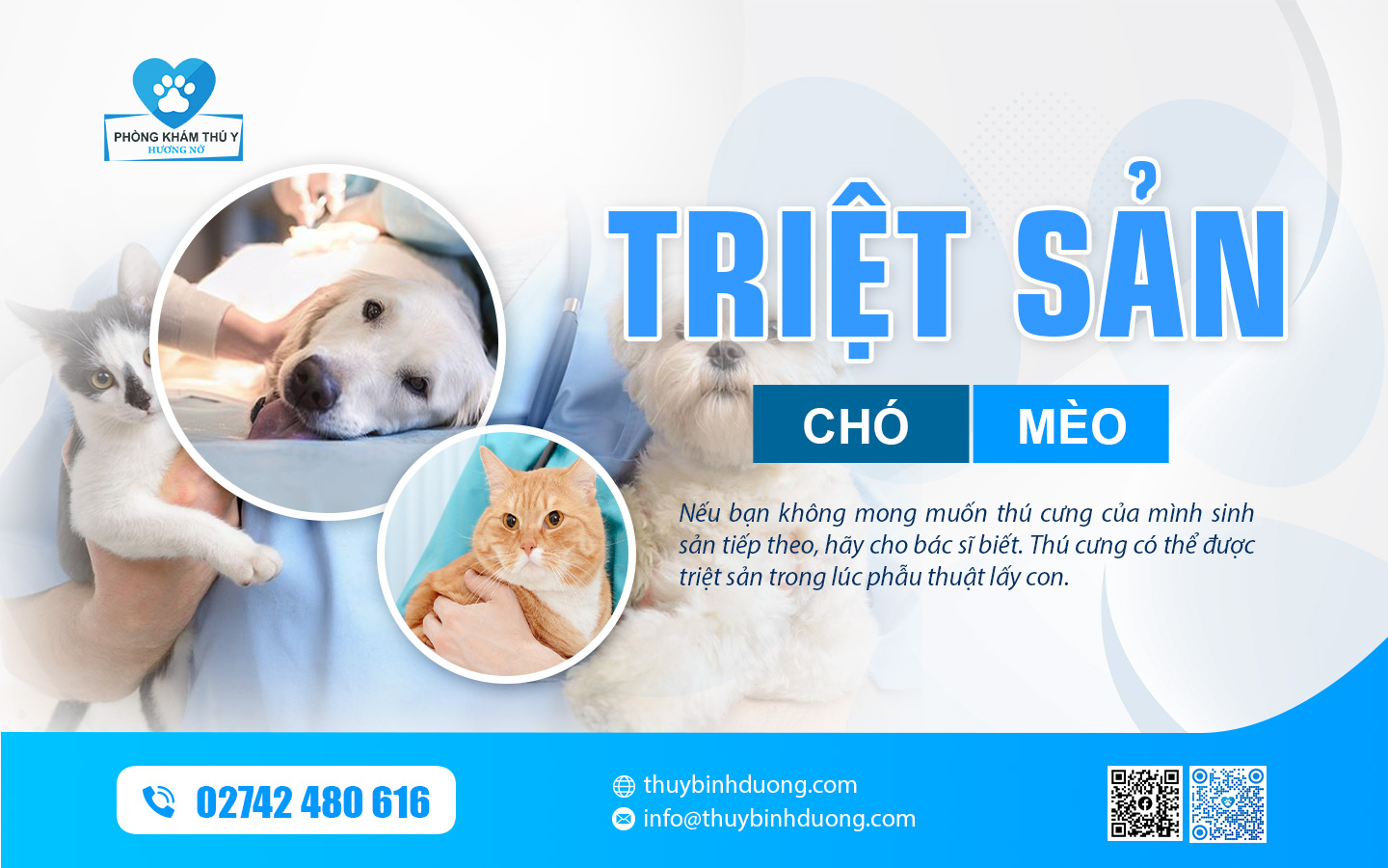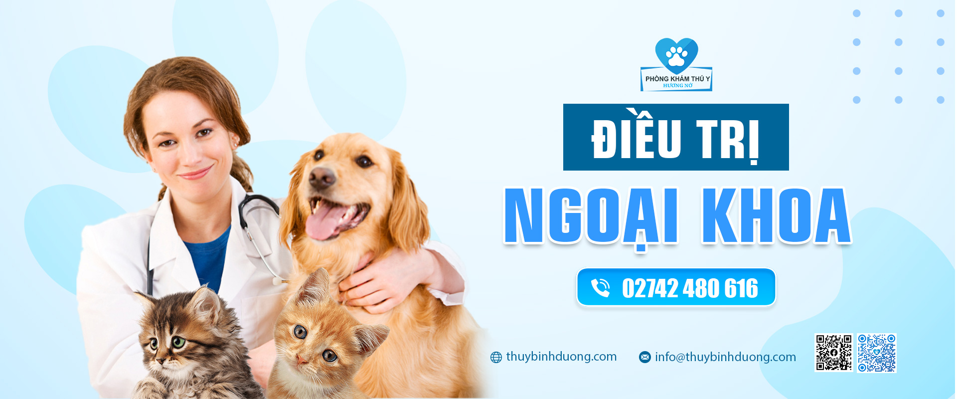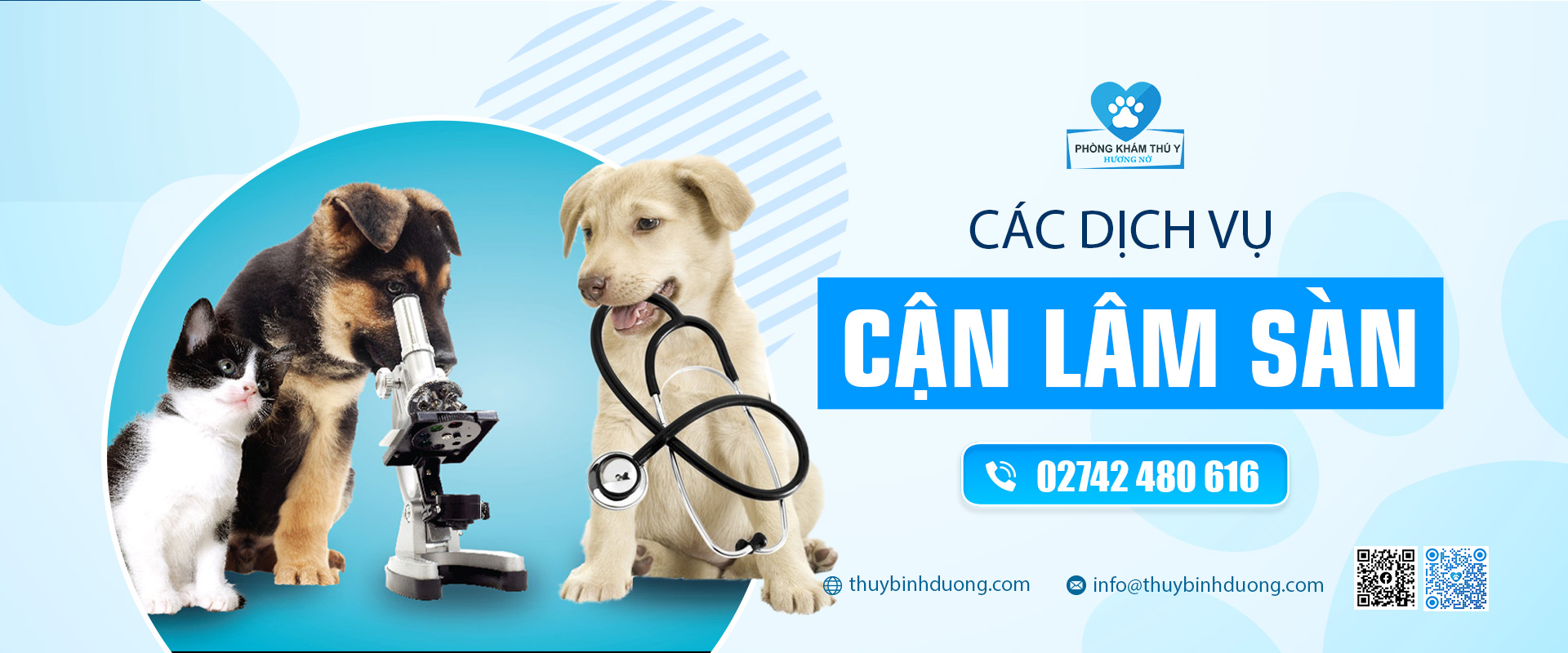 Phòng khám Thú Y Hương Nở – Bình Dương cung cấp dịch vụ cho thú cưng như: Chăm sóc – Điều trị nội khoa – Khám tổng quát Chó Mèo, các dịch vụ cận lâm sàng, điều trị ngoại khoa, Triệt sản – Thiến đực cho Chó Mèo, Đỡ đẻ – Mổ đẻ cho Chó Mèo, Tiêm phòng và tẩy giun sán cho Chó Mèo, Tắm spa trọn gói và cạo cắt tỉa lông Chó Mèo, Dịch vụ Khách sạn lưu trú Chó Mèo tại Thủ Dầu Một, Bình Dương.
